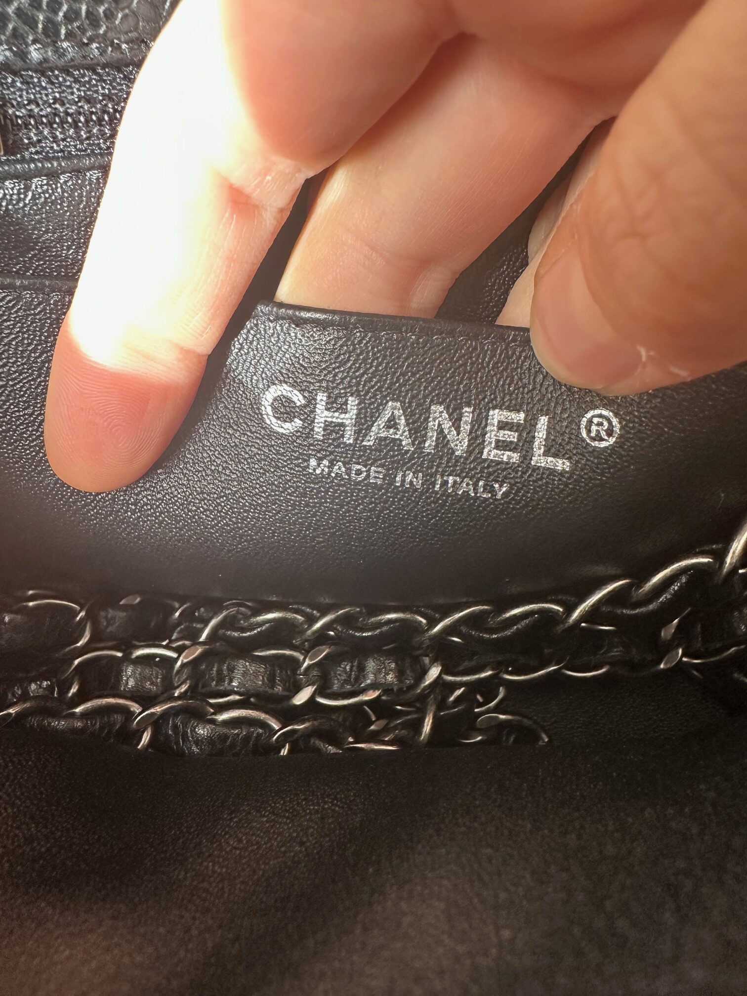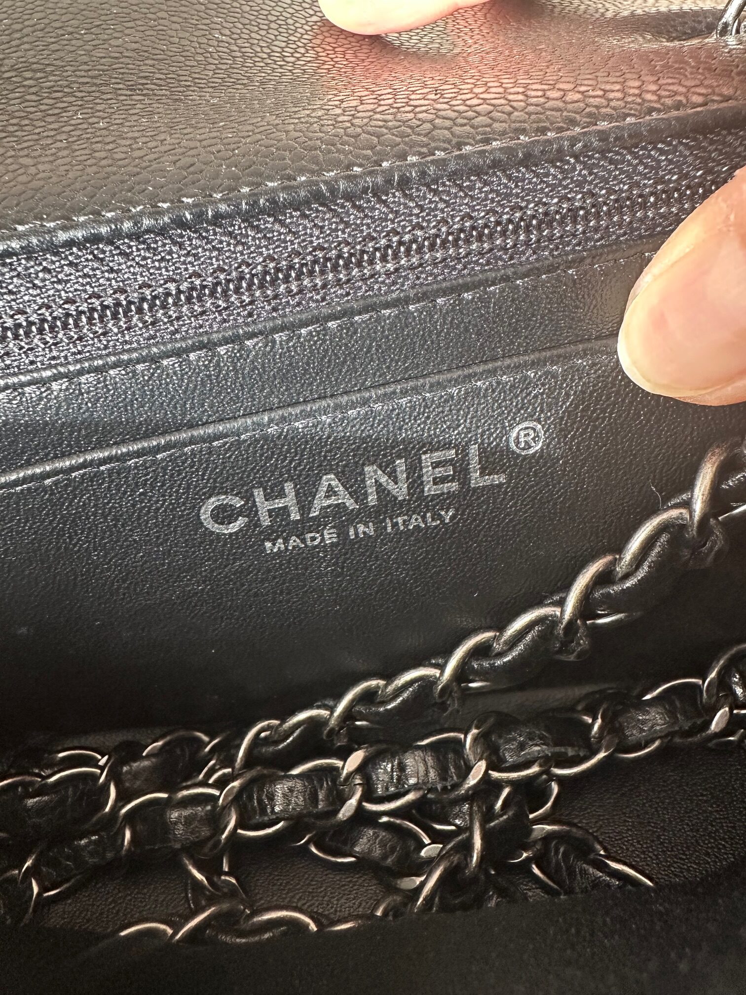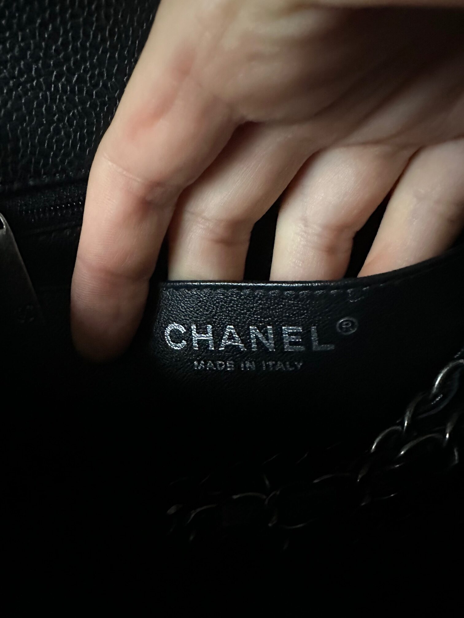 color: black caviar leather