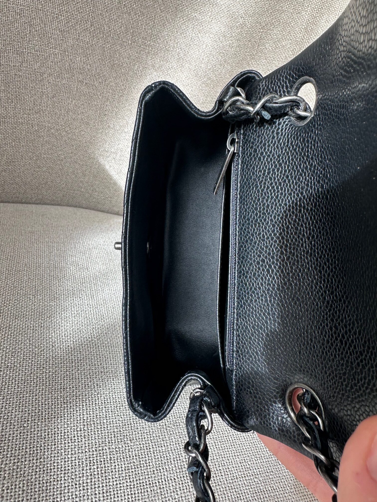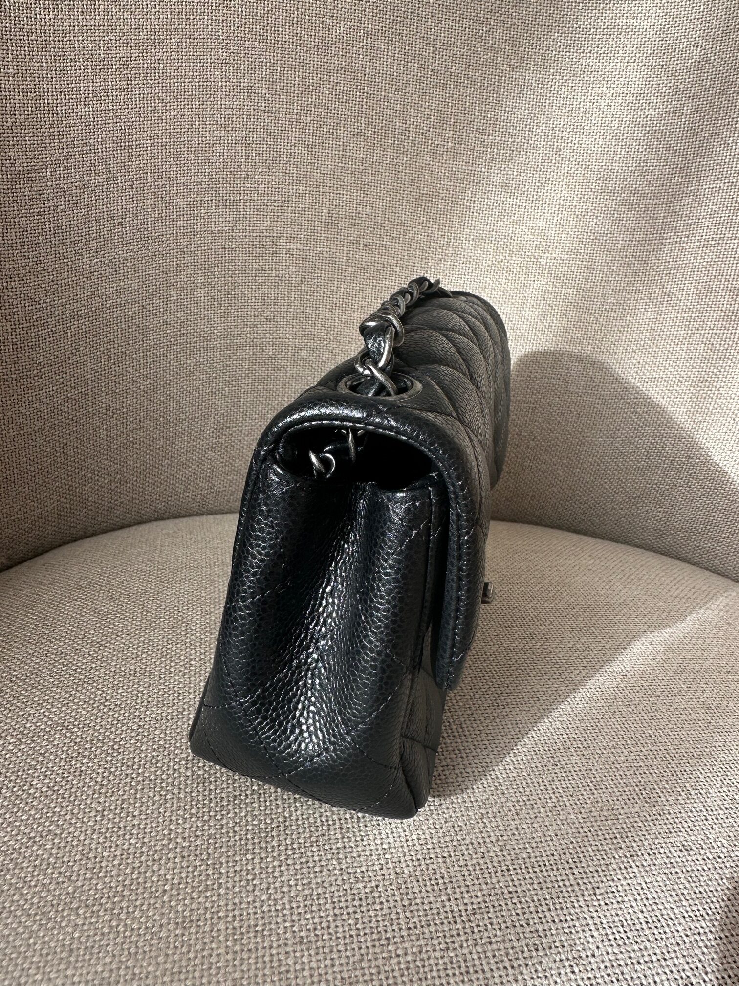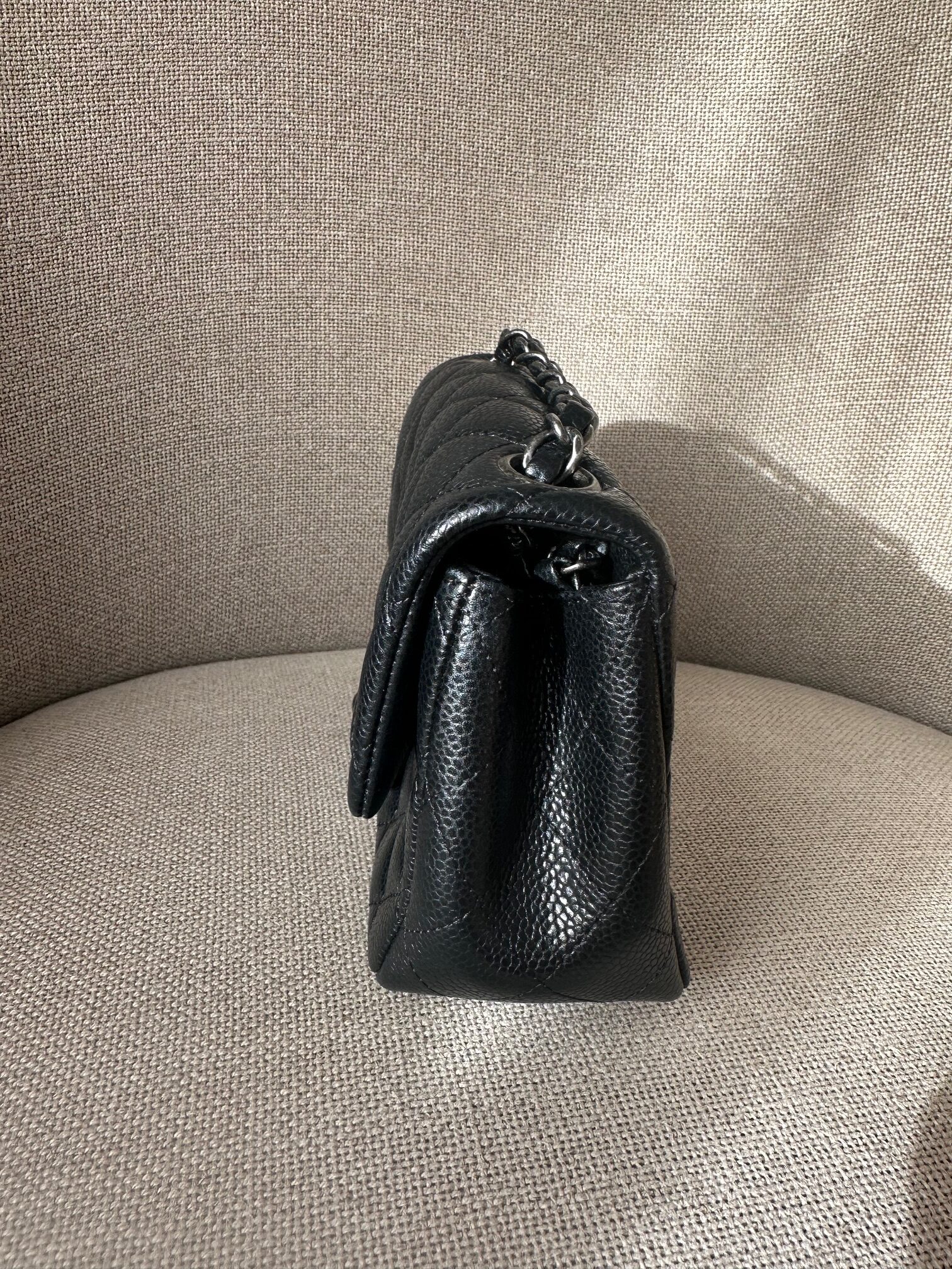 color: black caviar leather
